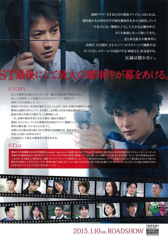 ST 是 Scientific Task Force 的意思,即科学特搜班,此为 ST 系列首播的单发特别篇。藤原龙也饰演警视厅科学特搜班法医学专家赤城左门,性格古怪但推理能力超群。与队长百合根友久搭档,率领 ST 成员运用科学手段侦破案件