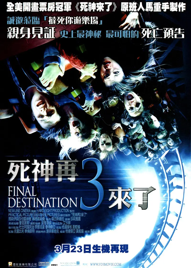 - 温蒂预见游乐园过山车事故,带几名同学逃离。死神如影随形,幸存者在恐怖的死亡倒计时中挣扎。温蒂通过相机照片寻找线索,却发现每个人的死法都暗藏在照片细节中,死亡陷阱无法避免