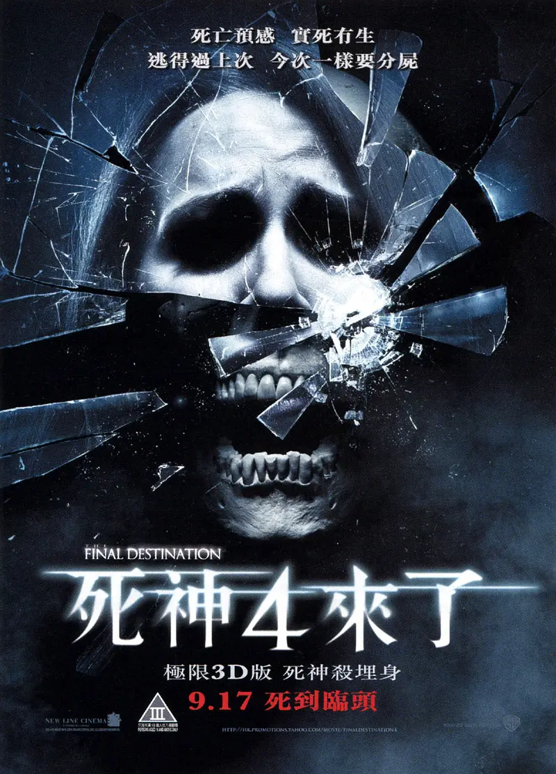 - 尼克预见赛车场惨烈事故逃出生天。死神的杀戮手法更加残忍血腥,3D效果展现极致恐怖画面。幸存者试图通过杀死他人来续命,却发现这只会让死神的计划更加完美,无人能逃脱死亡清单