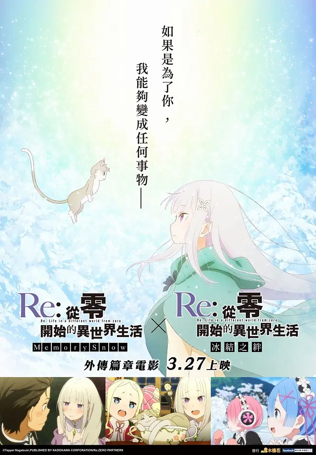 - Re:Zero系列特别篇合集。讲述昴和同伴们在冒险之余的日常生活小故事,轻松搞笑的氛围让观众看到角色们不为人知的另一面。包含多个短篇故事,充满治愈和欢乐...