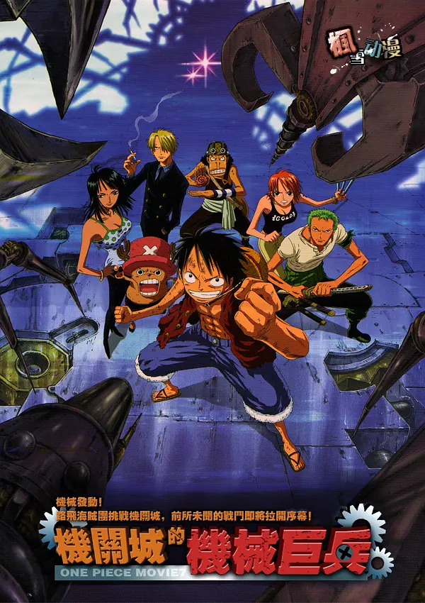 - 正是狂风暴雨时节,路飞、娜美、索隆等人登上一艘行将沉没的海盗船,并发现一个巨大的藏宝箱。结果箱子里是一个长相怪异且有点脱线的老太婆。众人来至老太婆所住的机关城,却被老太婆的儿子兰切特用其研制的机械巨兵向梅利号展开攻击 ...