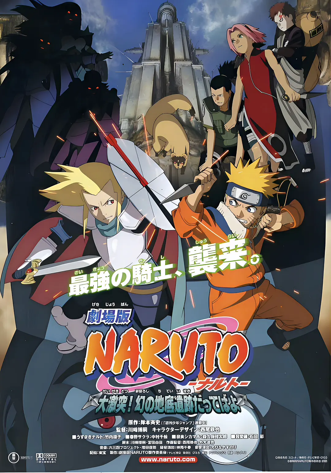- 鸣人、小樱和鹿丸三人进入深山寻找走失的雪貂,在回来的路上,他们遭到全副武装的骑士团的袭击。在激烈的对抗中,鸣人和对方头目特穆金一同跌落悬崖,继而得知特穆金要建立一个没有战争和灾难的乌托邦,而鸣人具有的神奇力量正是他们所需要的 ...